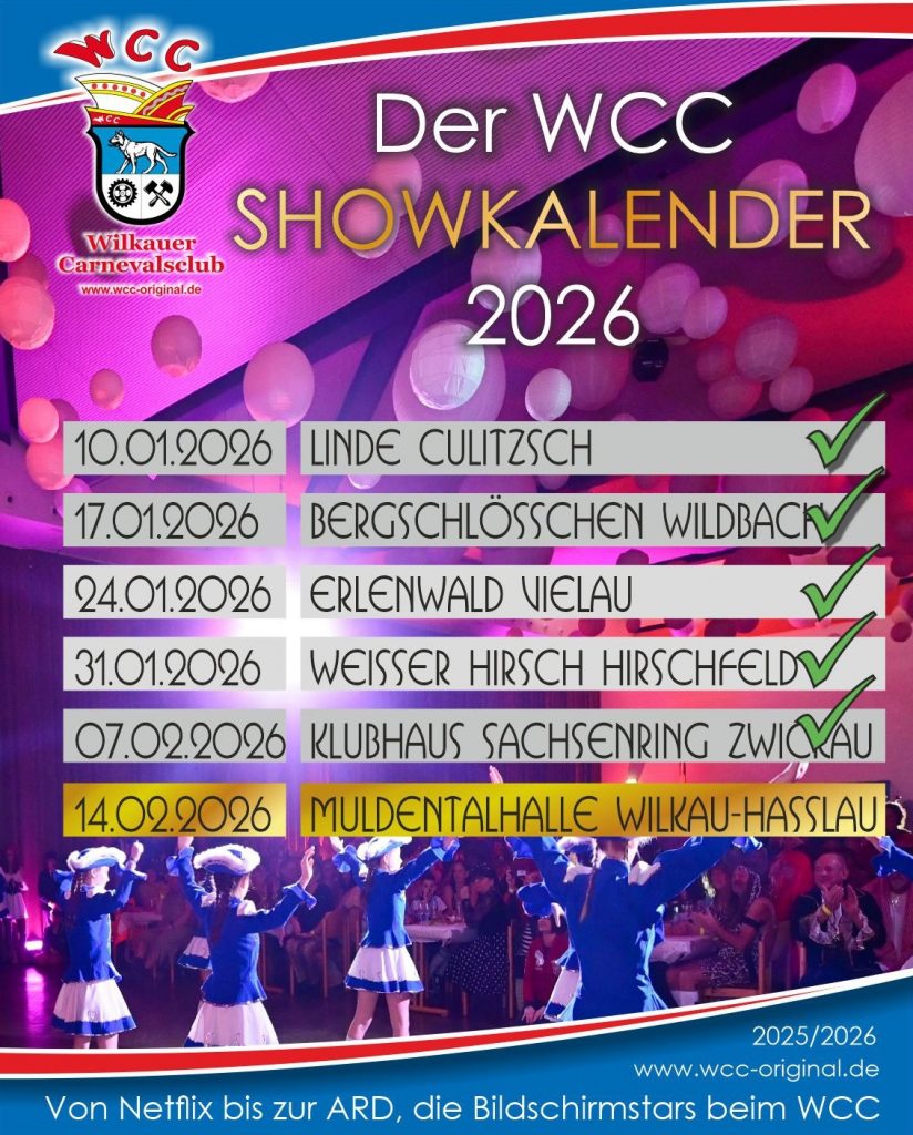 | 14.02.2026 | Muldentalhalle Wilkau-Haßlau | Restkarten im Borberghaus Kirchberg, Q1-Tankstelle Kirchberg und Bru-He Wilkau-Haßlau |